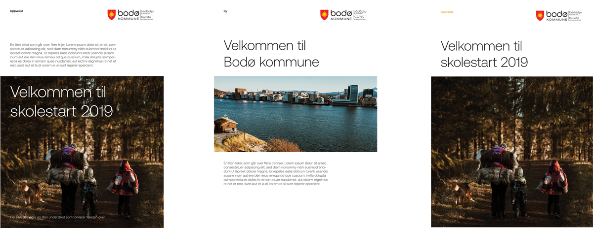 Det er satt opp tre maler på hvordan identiteten skal brukes på plakater.